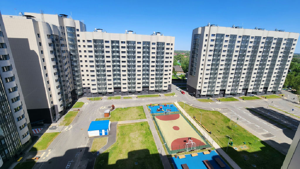 Подъезд в доме чистый. 4 квартиры на этаже. Большой, ухоженный двор. Благоустроенная придомовая территория с оборудованными спортивными и детскими площадками. Паркинг рядом с домом - открытый, свободный.